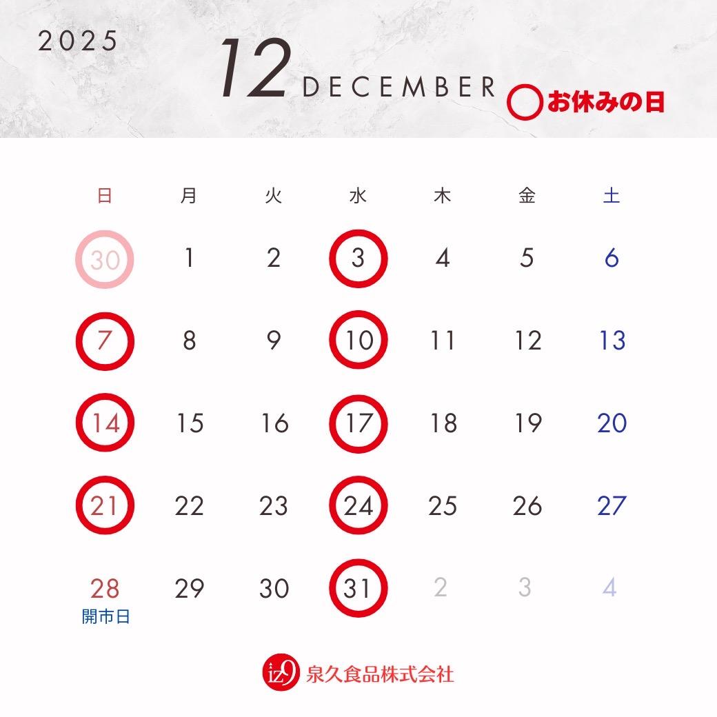 12月の市場の休日をアップします